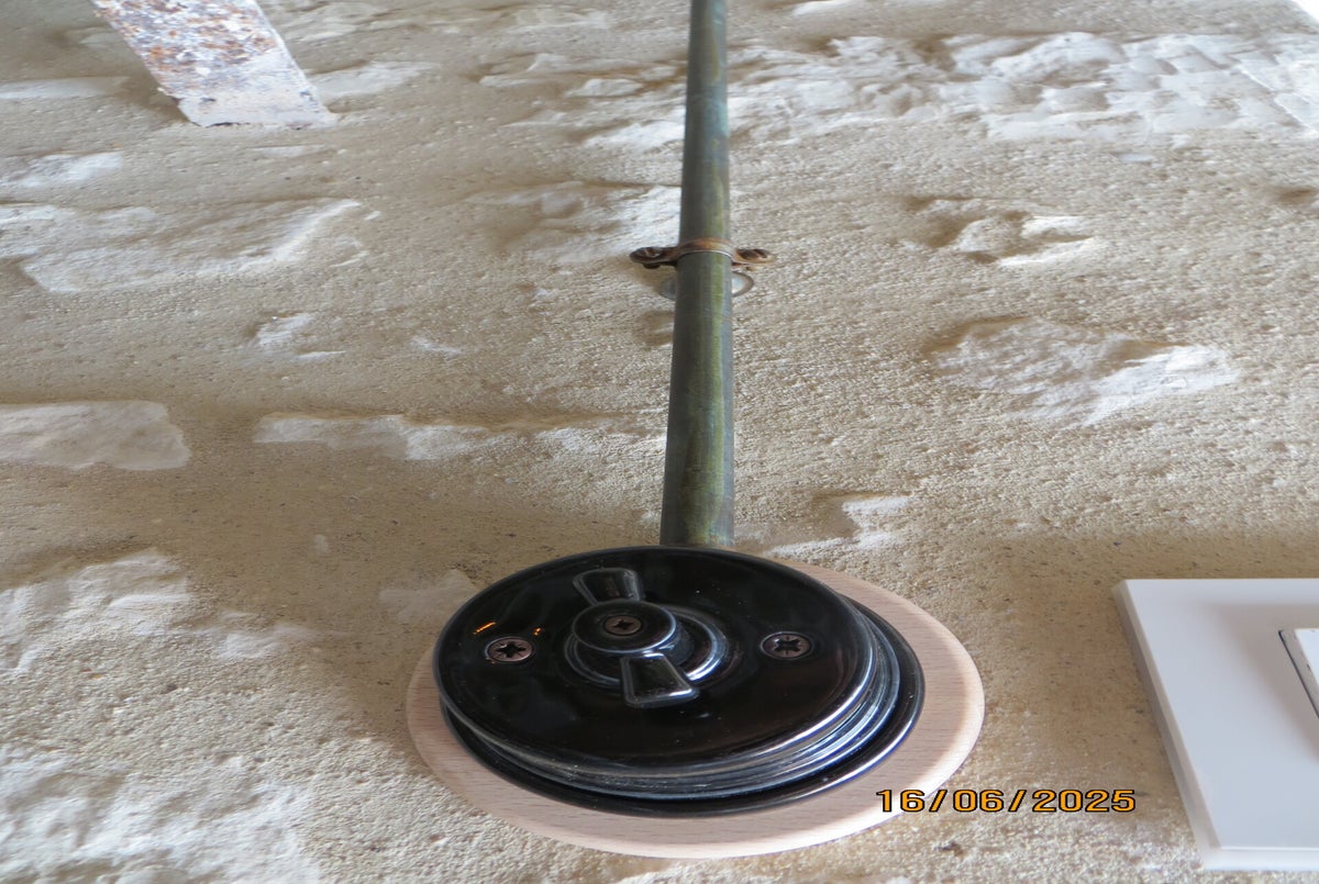 Installation et mise en électricité d'un lampadaire vintage Installation électrique en passage par les combles